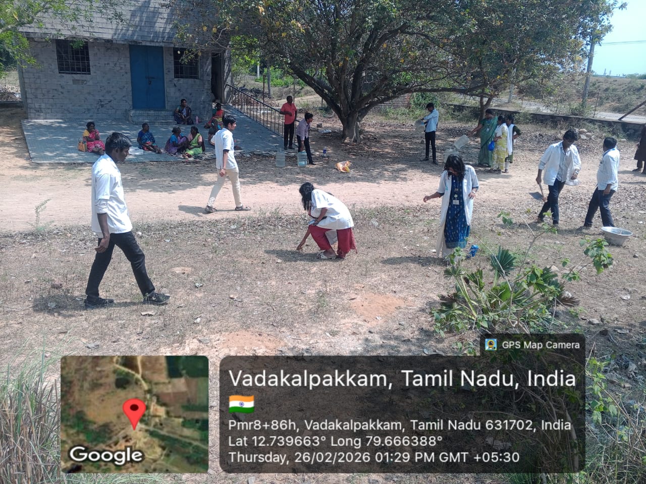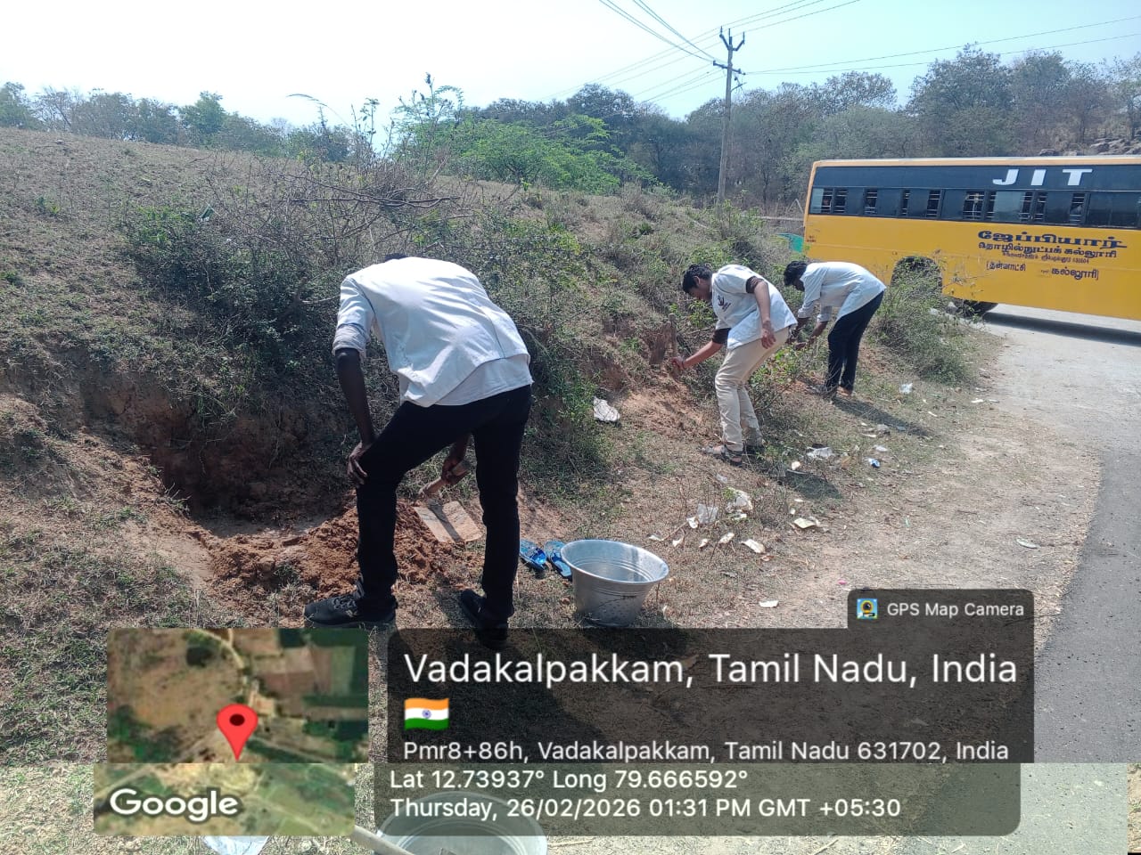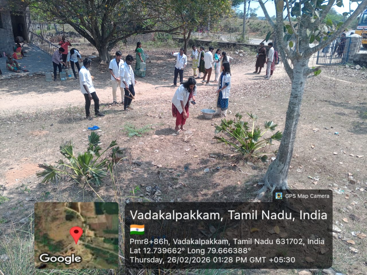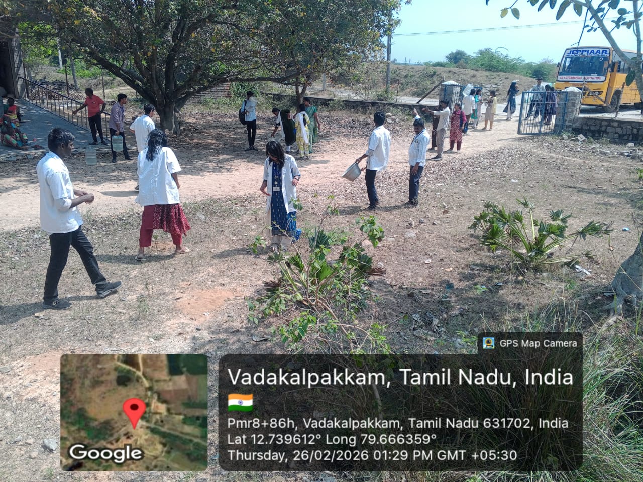 Students enthusiastically took part in cleaning activities, waste collection, and plantation work under the guidance of faculty coordinators. During the programme, students were also briefed about the historical importance of the Mamandur Cave Temple.