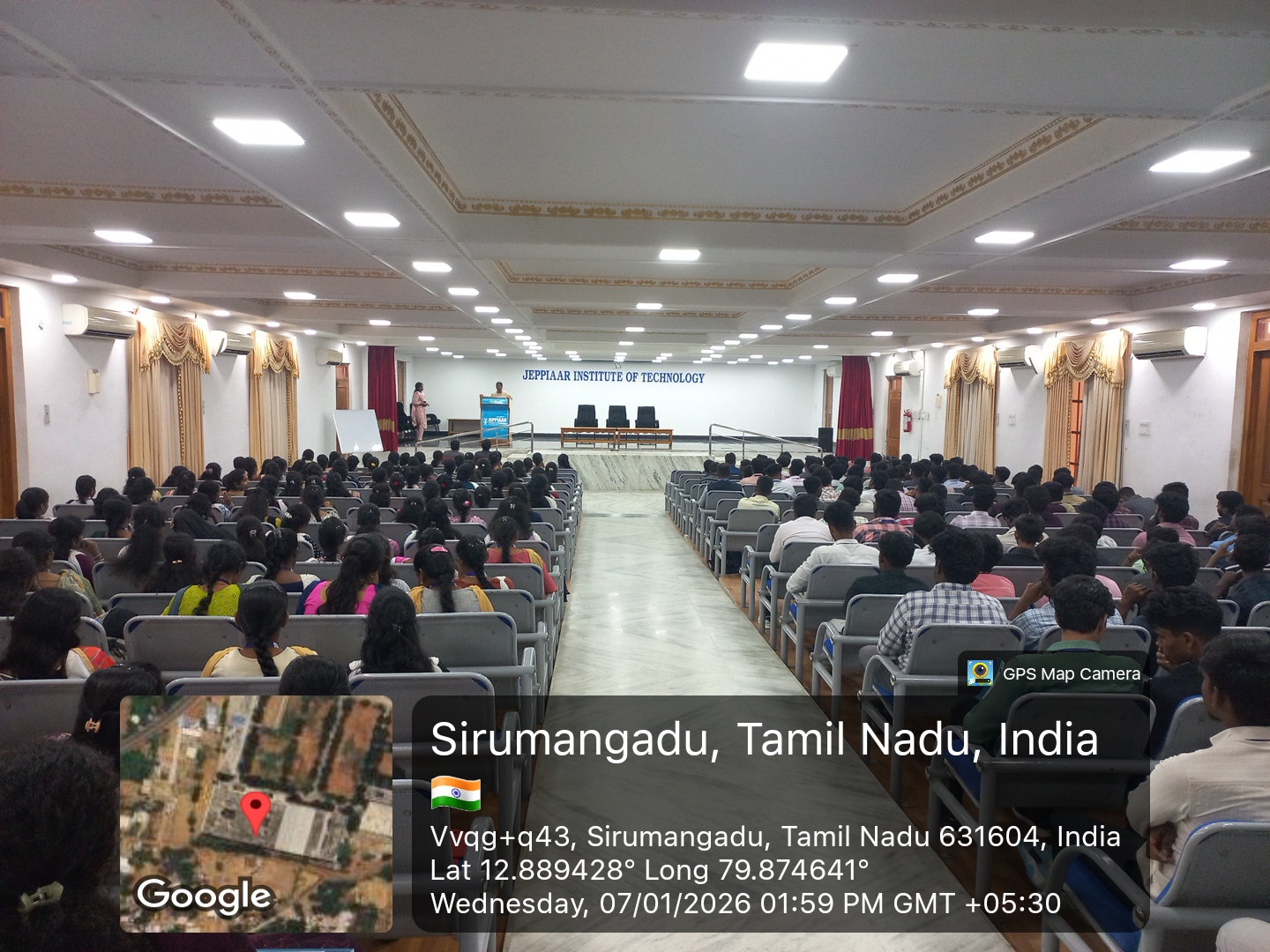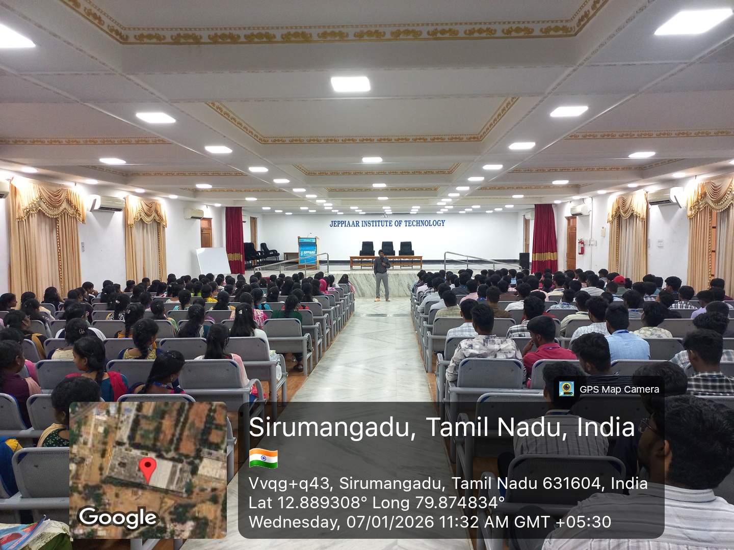 Jeppiaar Institute of Technology, an autonomous institution committed to academic excellence and innovation, proudly presents the Orientation Program for Media Masterclass in collaboration with GT – Manidham. This initiative is supported by the Ministry of Education, AICTE, Ministry of Education’s Innovation Cell, and the Institution’s Innovation Council, reflecting our dedication to fostering creative and socially responsible media professionals.
