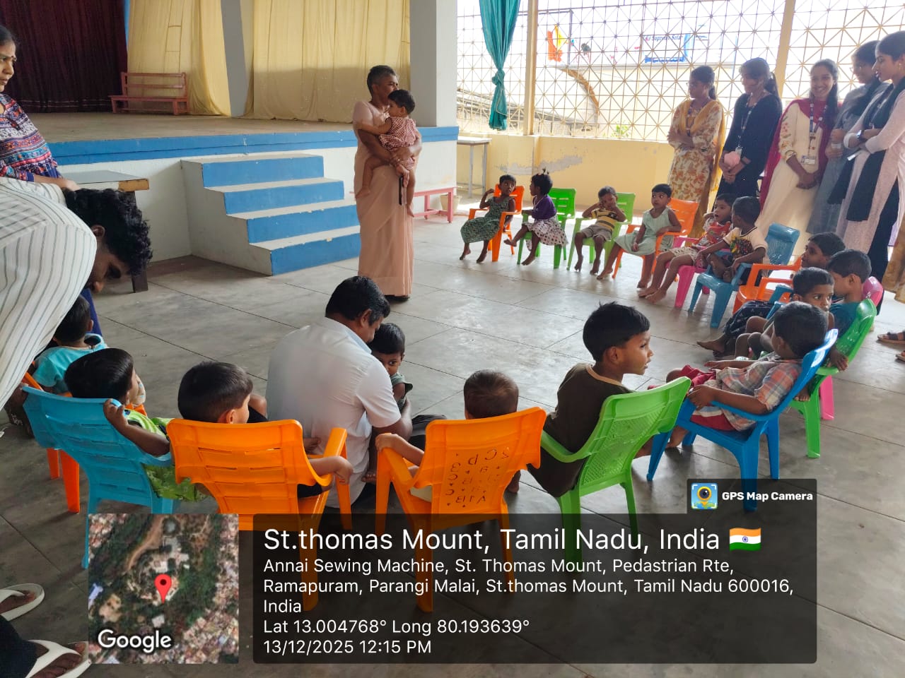 Jeppiaar Institute of Technology students visited St. Thomas Mount Children Home on 13-12-2025, sharing love, care, and festive cheer with the children.